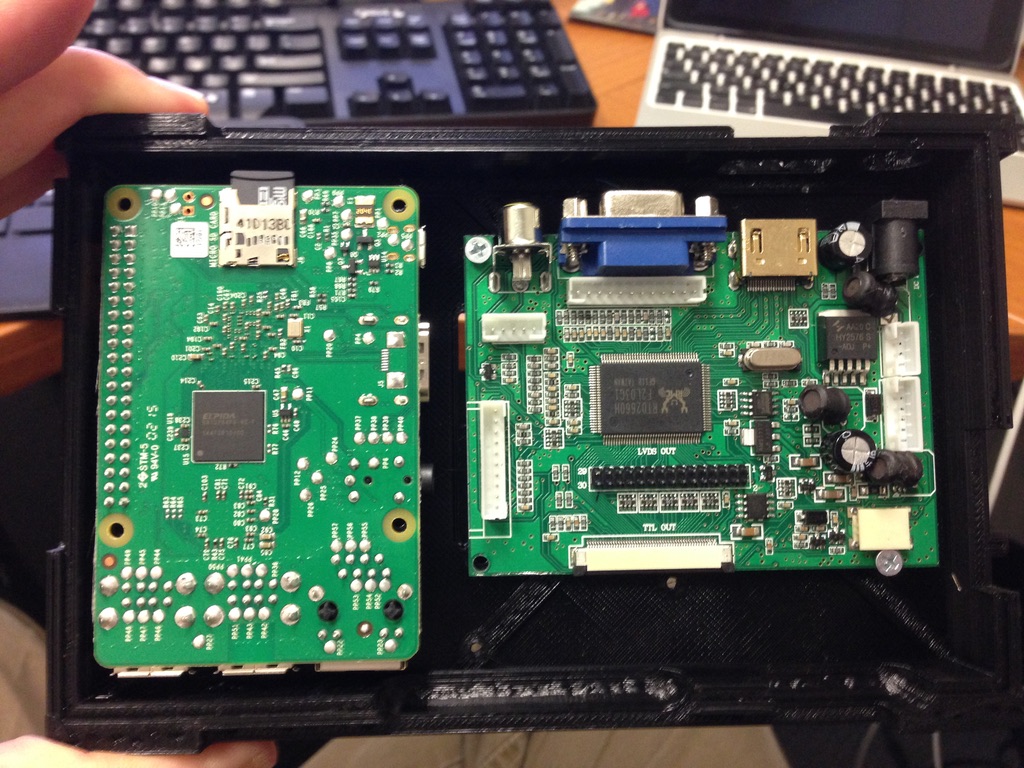 Prototype 1: Raspberry Pi – 7″ touch screen controlled LCD. Full custom enclosure design, printed on 3D printer.